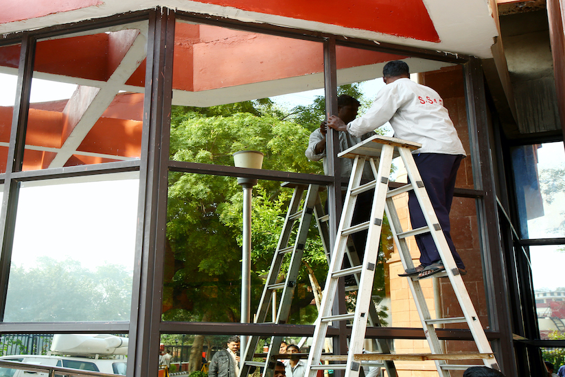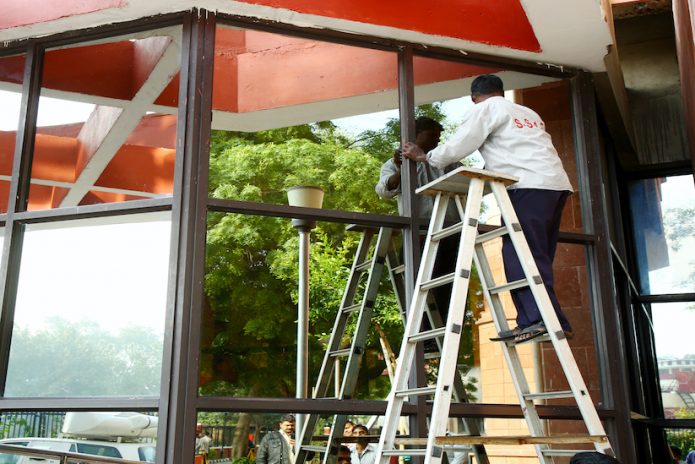 • Dusting of all high rise walls, cobweb removing etc. through various cleaning tools available in the glass cleaning kit.