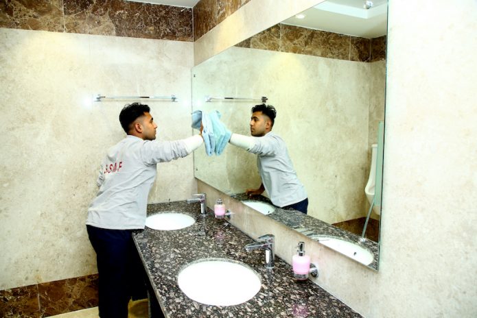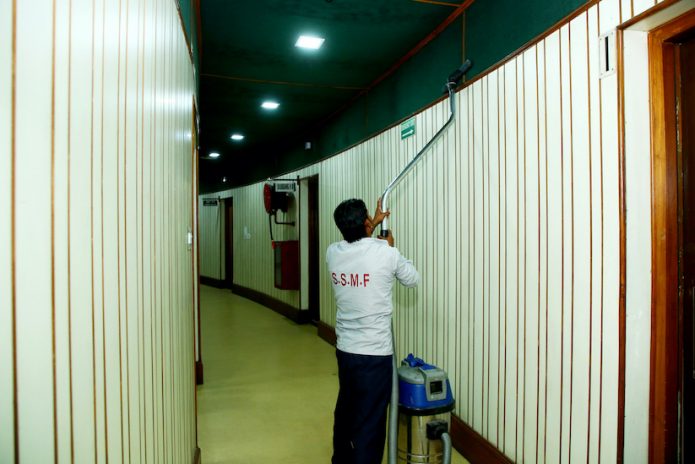 • Mopping of all floor areas through Dust Control Mop and dusting of all furniture, doors, computers, beds etc. through damp duster, using disinfectants.